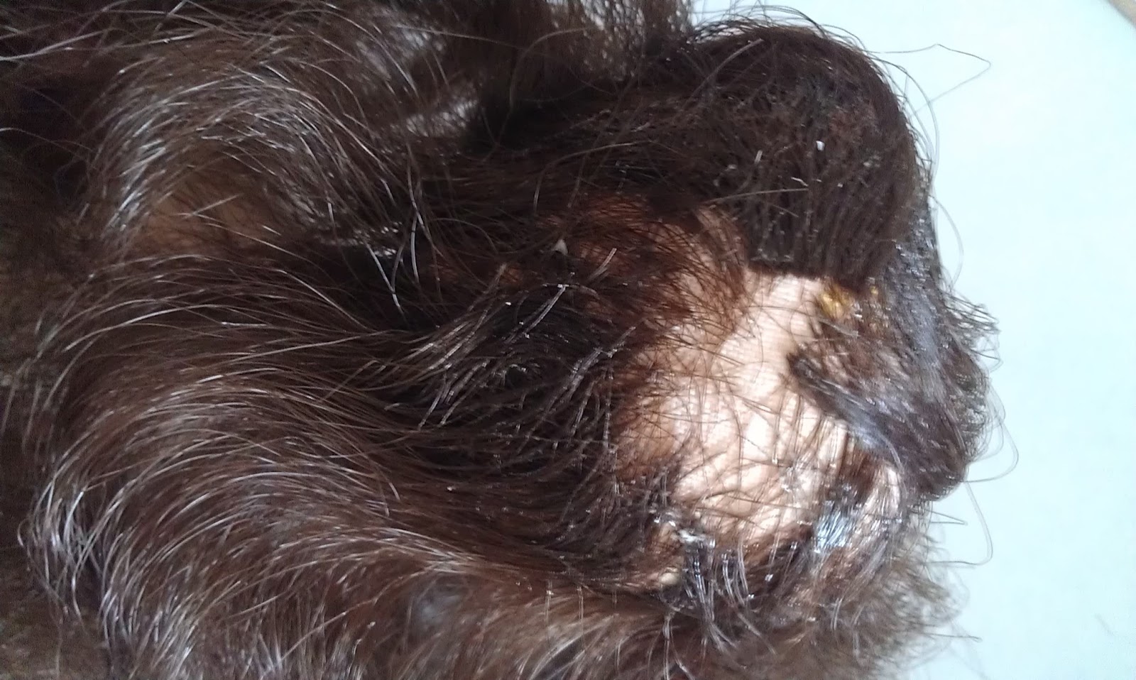 Когда волосами покрыта вся голова, нужно очень аккуратно заклеить макушку. Приклеивая прядь, капайте совсем немного клея, так, чтобы он не был виден сквозь волосы. Последние пряди в данном случае, я приклеивала таким образом: отрезала волосы длиной в два раза больше, чем нужно для прически, приклеивала за середину локона, чтобы одна часть была у лица, вторая спускалась к затылку.
