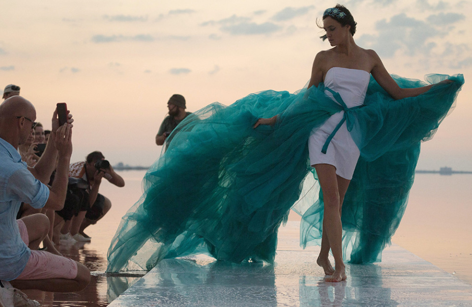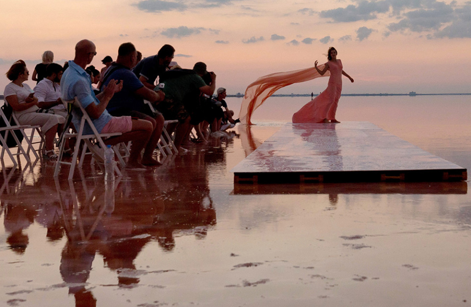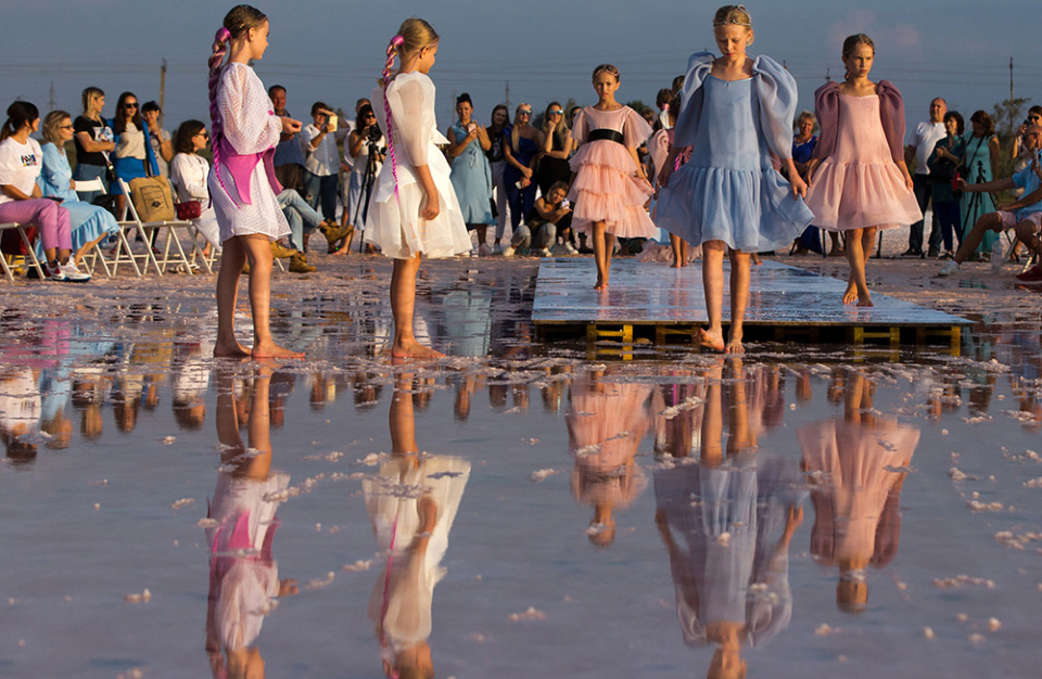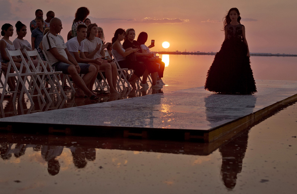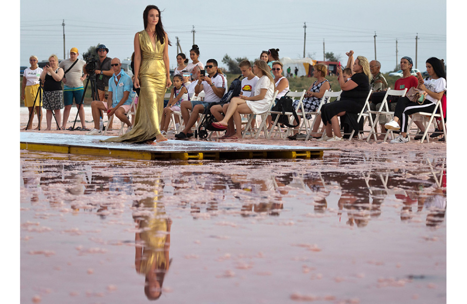 Озеро Сасык-Сиваш под Евпаторией, известное благодаря своему необычному розовому цвету, впервые стало площадкой для модного показа. Дизайнеры одежды продемонстрировали свои работы в рамках Crimean Fashion Week.(23 августа 2020)