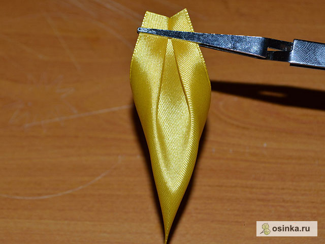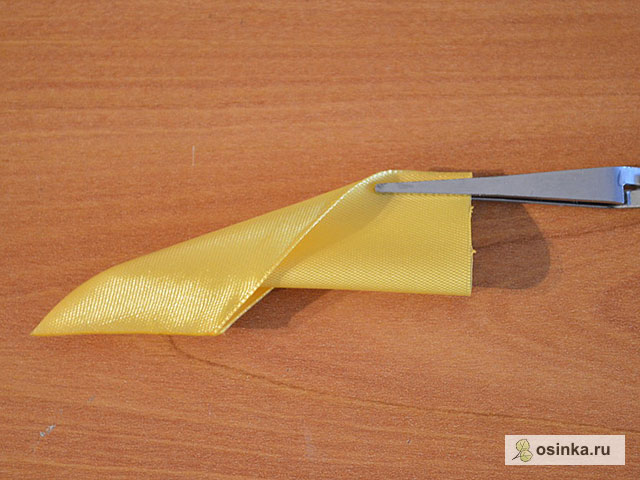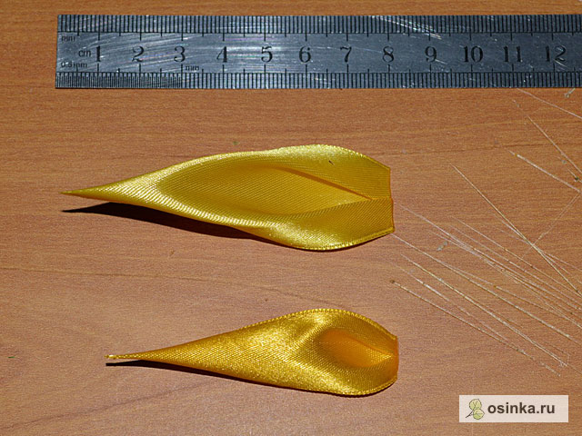 Как делала лепестки, покажу на широкой ленте. Из узкой ленты, лепестки делаются аналогично.