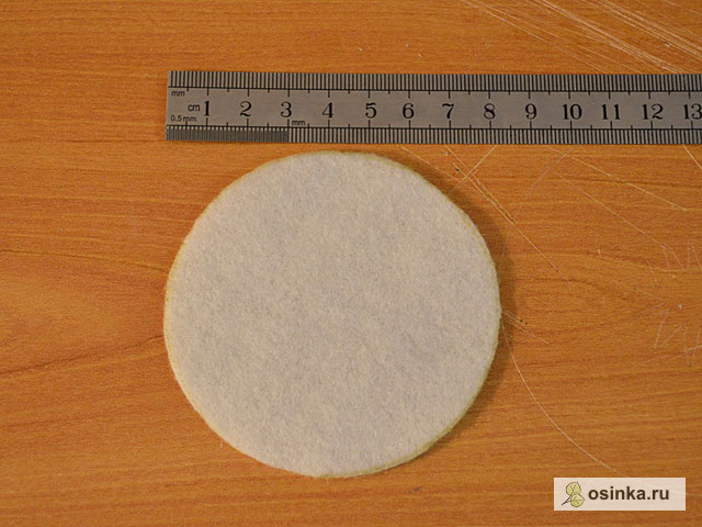 08. Теперь, когда лепестки готовы, делаю основу цветка подсолнуха. Из фетра вырезаю два круга диаметром 8 см.