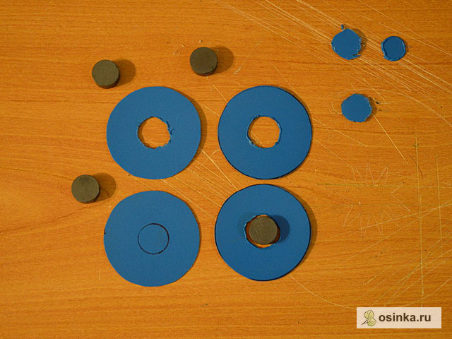 Важный момент! Приклеивая оставшиеся два магнита, следует проверить их полярность. Т.е. чтобы в готовом виде они примагничивались, а не отталкивались.