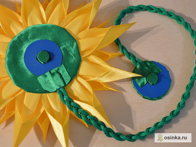 Например, подхваты можно выполнить в модной сейчас технике канзаши (кандзаси), как эти магнитные подхваты для штор "Подсолнухи".
