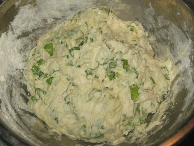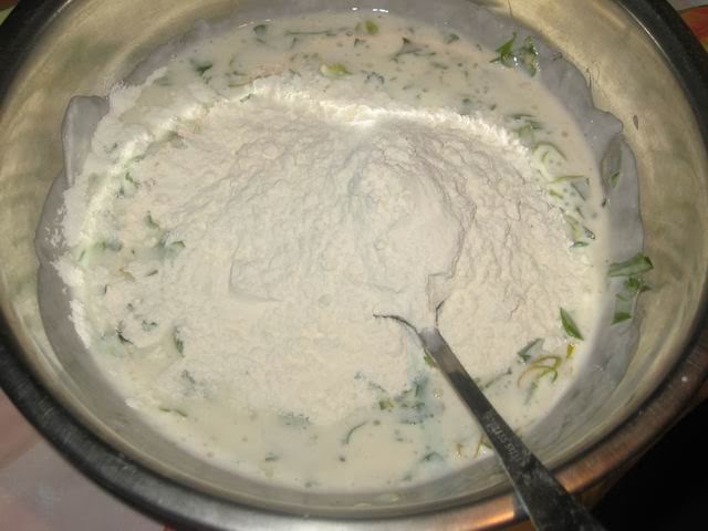 Потом начинаем постепенно добавлять муку.