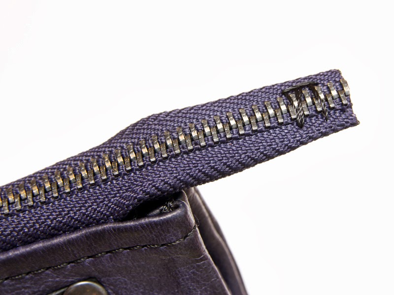 Расстегиваю замок, чтобы открылся доступ ко всем "внутренностям" клатча. В профиль это выглядит так (можно и чуть дальше расстегнуть - тут по желанию).
