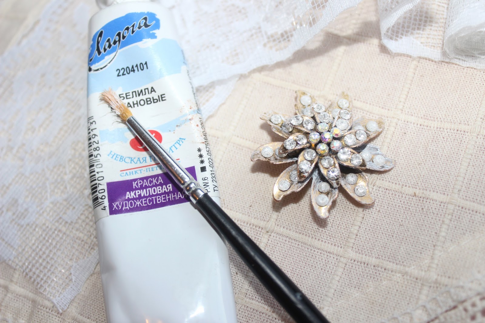 11) Выбираем серединку для цветка-у меня золотая брошка,покрашенная немного акриловой краской