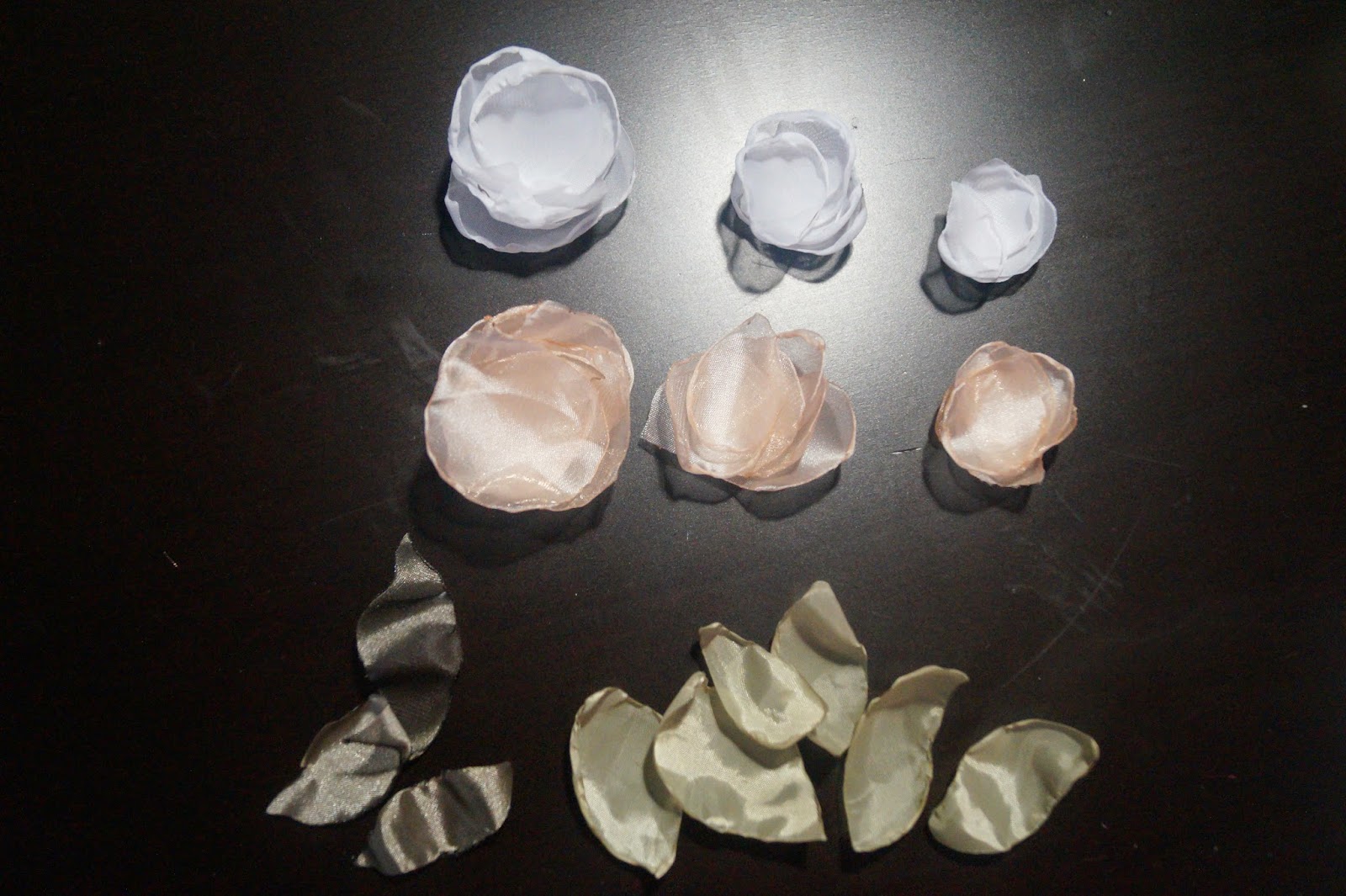 Эти цветы бесподобно смотрятся из тафты и всех держащих форму тканей. Причем, выполненный из легкой хлопковой ткани цветок смотрится настолько просто и по-деревенски, насколько дорого, выглядит такой же, сделанный из ткани с перламутром.