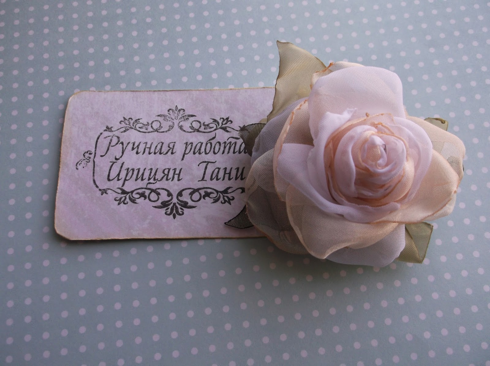 Данный цыеток выполняется из органзы, атласа, из "летящих" тканей, а также тканей, которые держат форму Получается милейший воздушный малыш. Идеально подходят для работ в стиле Шебби-шик.