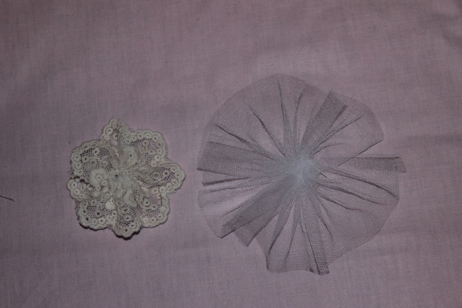10) Второй и третий слой-ничего сложного) Собираем на ниточку фатин (чтобы смягчить грубоватость льна),я брала отрез примерно 50 см длиной. И обычное кружево,собираем таким же образом.