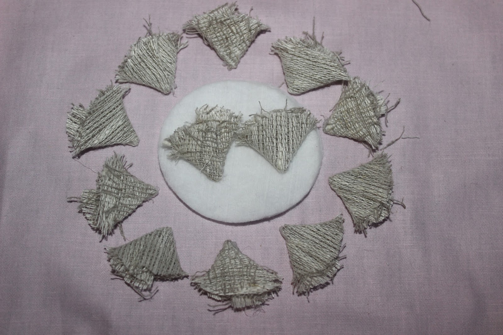 6)Должно получиться 15 треугольничком. берем за основу кусочек фетра диаметром 5,5-6 см