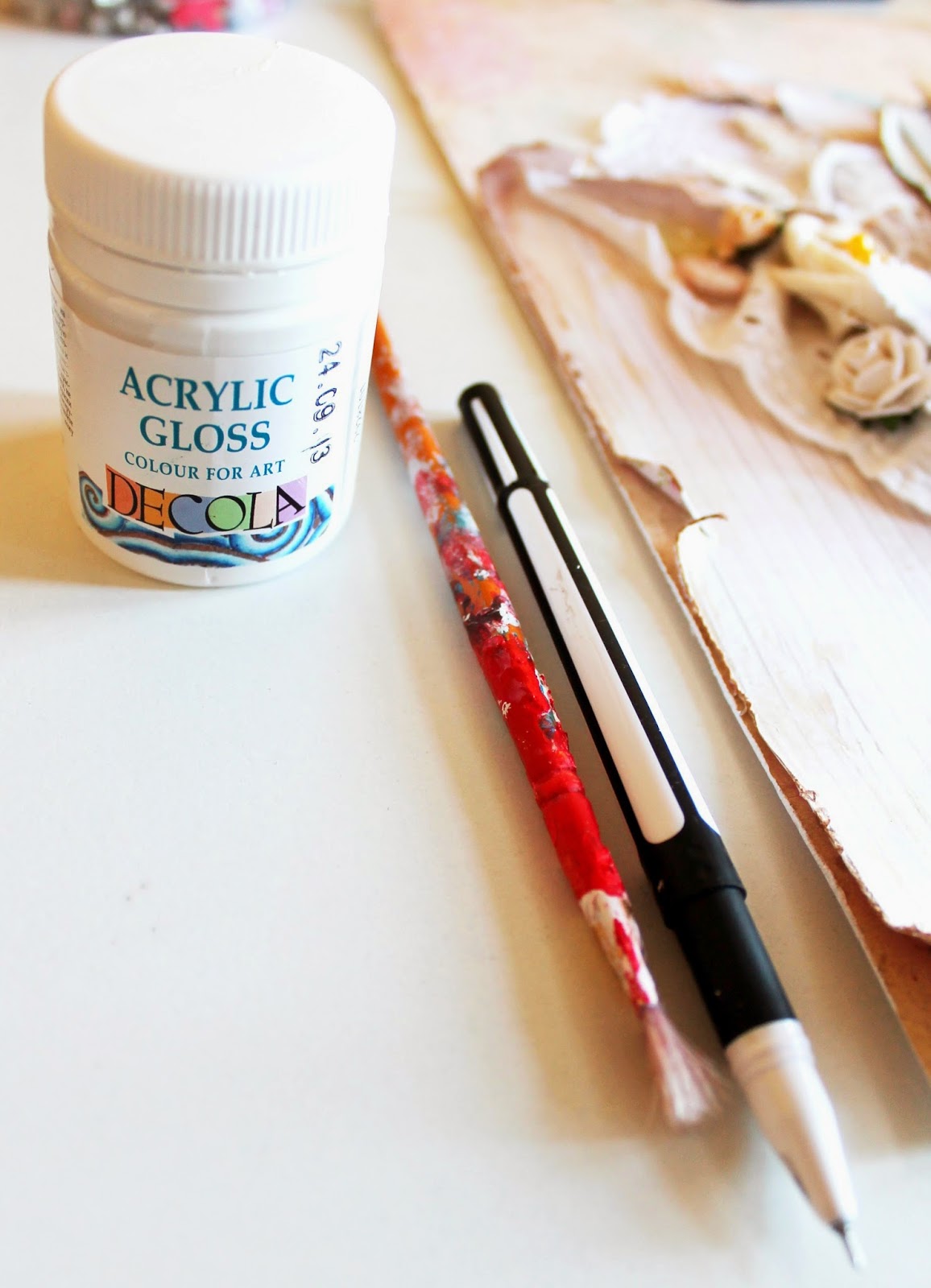 Теперь нам снова понадобиться акрил,кисточка и черная гелиевая ручка