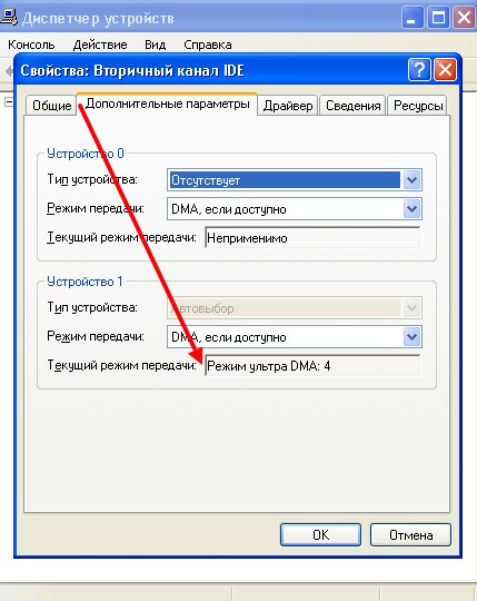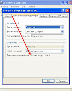 В "Дополнительных параметрах ", где стоит "Режим передачи ", выбираем " DMA"