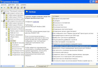 В правом окне находим "Сделать недоступными средства редактирования реестра" . Открываем Свойства политики или два раза кликаем мышкой.
