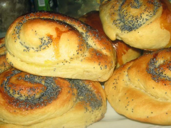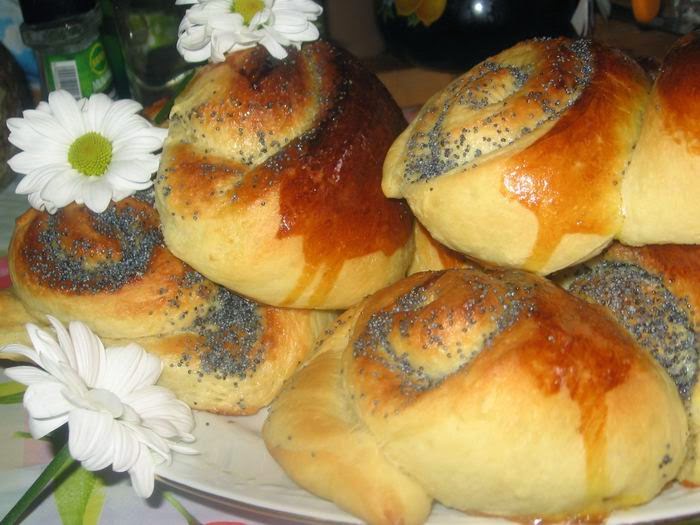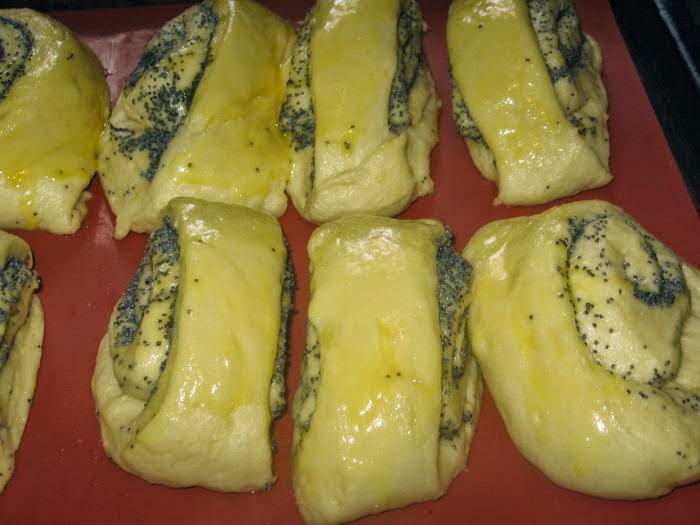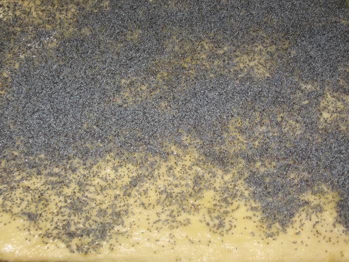 Смазываем его растопленным сливочным маслом, посыпаем сахаром и маком,