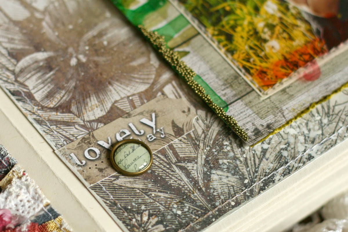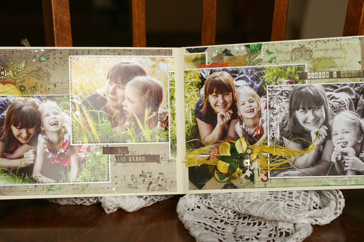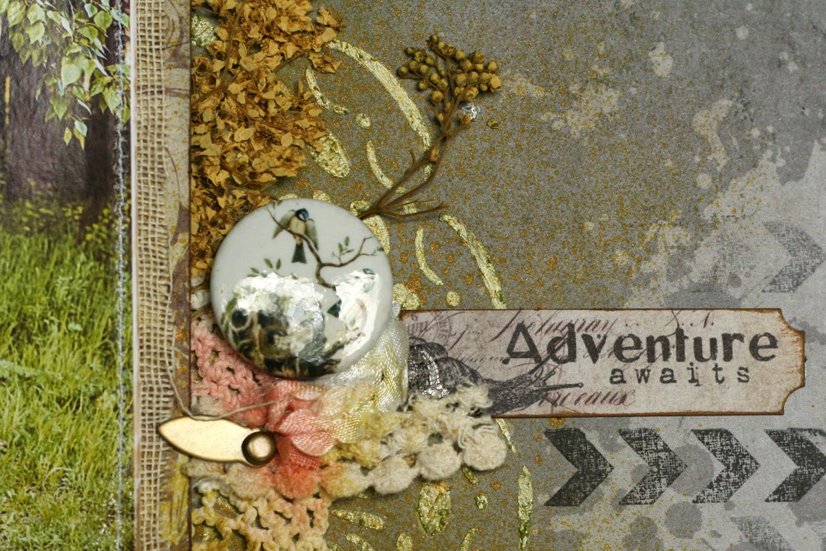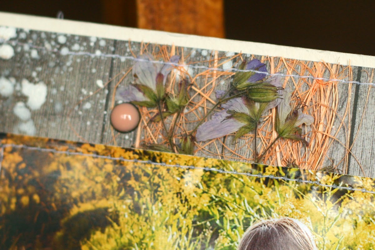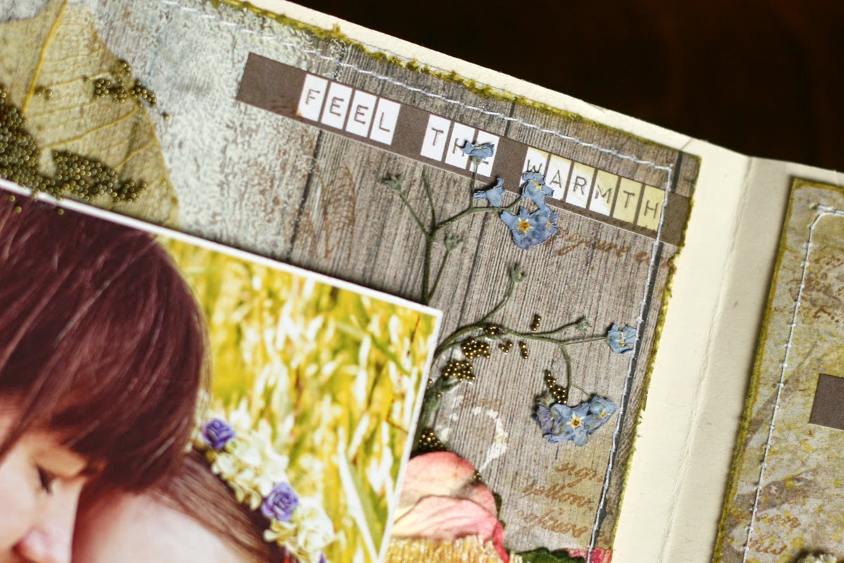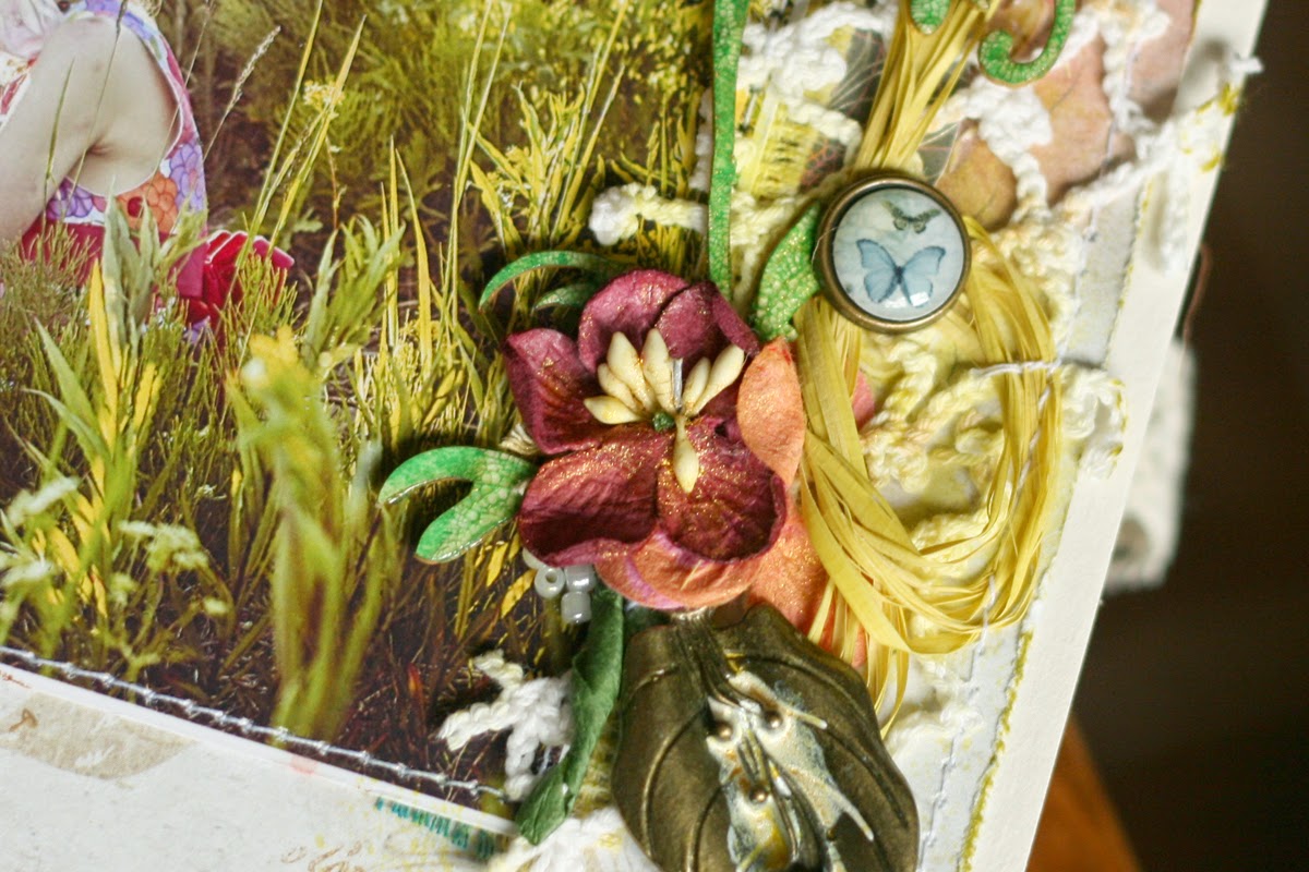 Альбом в основном сделан из бумаги 7 Dots Studio коллекция Nature Walk, которая и дала название альбому - ушел почти весь набор бумаги. Есть немного Kaisercraft и Scrapberryes моя любимая коллекция "Ветер странствий". Так как альбом на тему природы, то и украшения в основном использовала из природных материалов. Например, хлопковое кружево.
