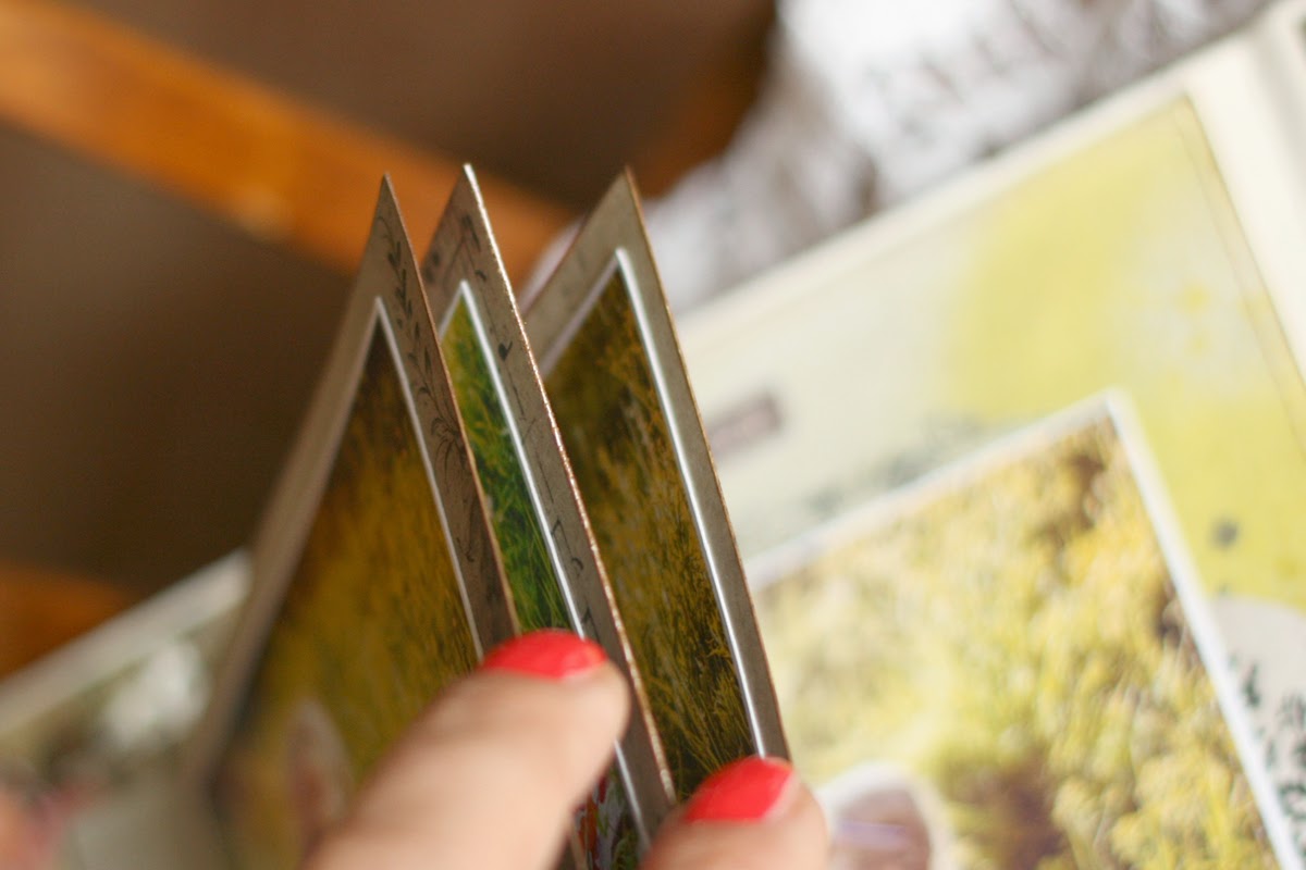 Так как альбом небольшой по формату, теги, которые прилагались к набору бумаги Nature Walk, оказались слишком большими, и я вырезала их уменьшенные копии с обложки набора - того самого листа, где представлены миниатюры всех листов.