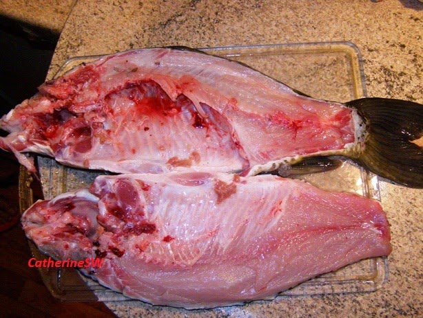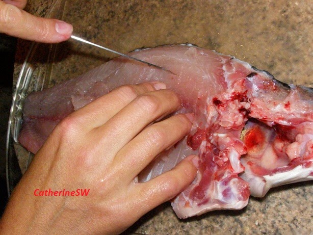 6. Подрежем кожу и со стороны хвоста и аккуратно срежем мясо по кости