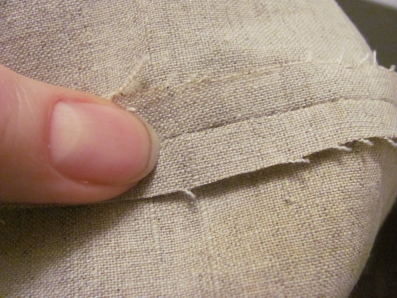 - Вставьте одну готовую деталь в другую, излишек подкладки по низу отрежьте так, чтобы верхняя часть была на 2-3 см длиннее внутренней. Низ основной детали загните внутрь и подшейте на руках.
