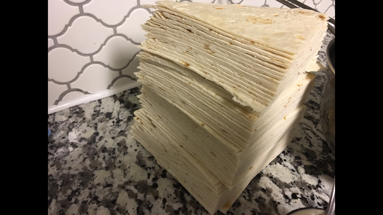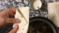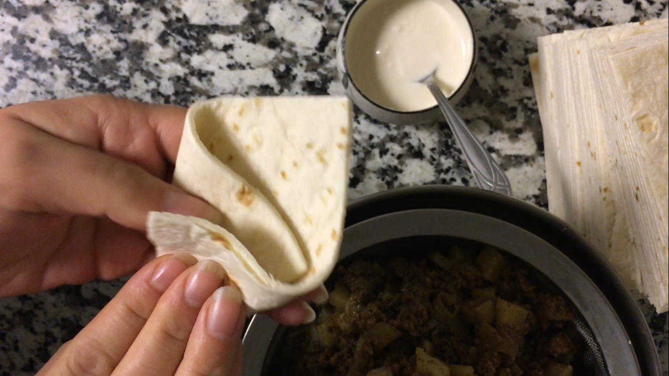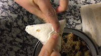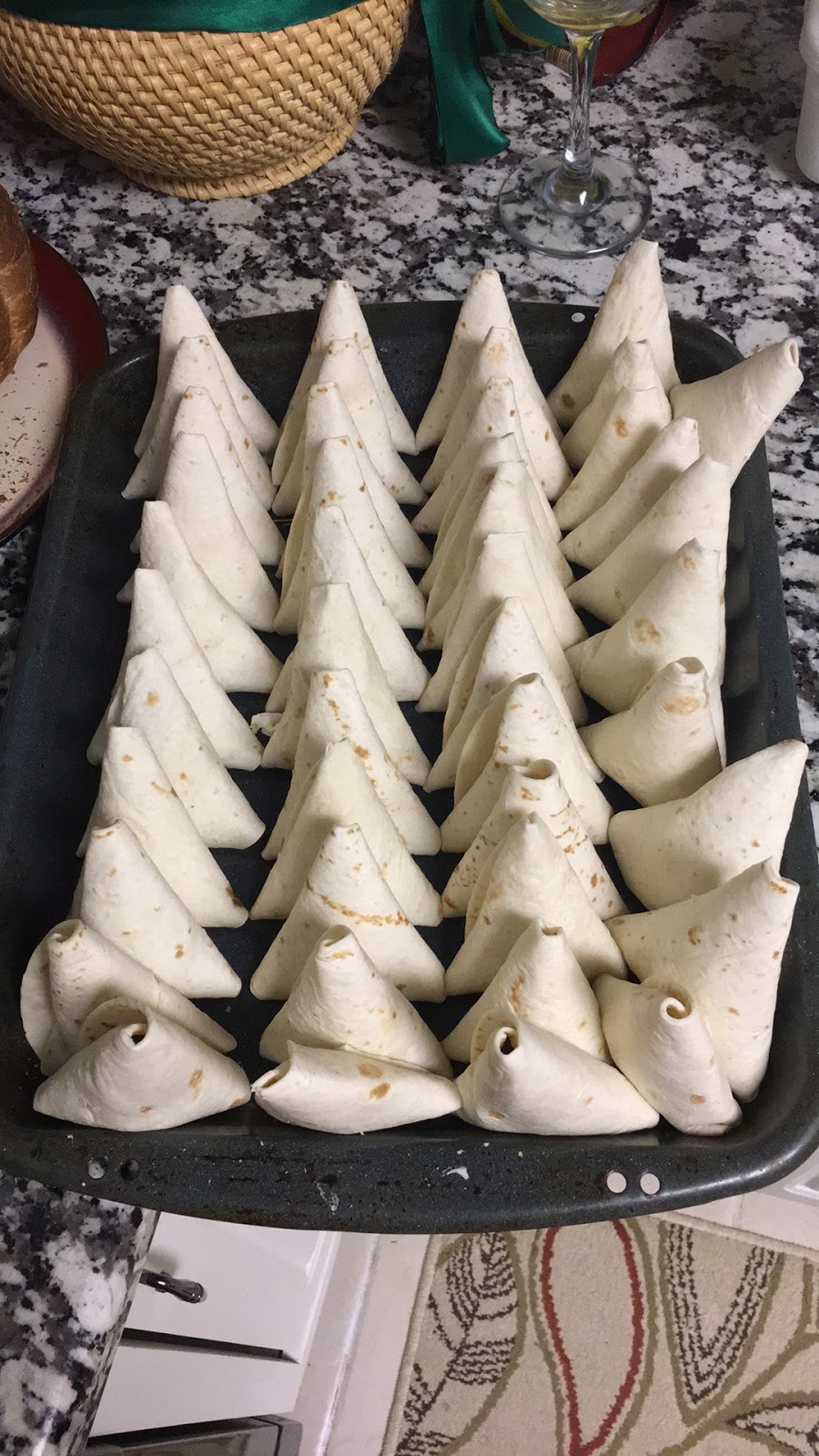 Разрежем наш лаваш на треугольники и начинаем заворачивать
