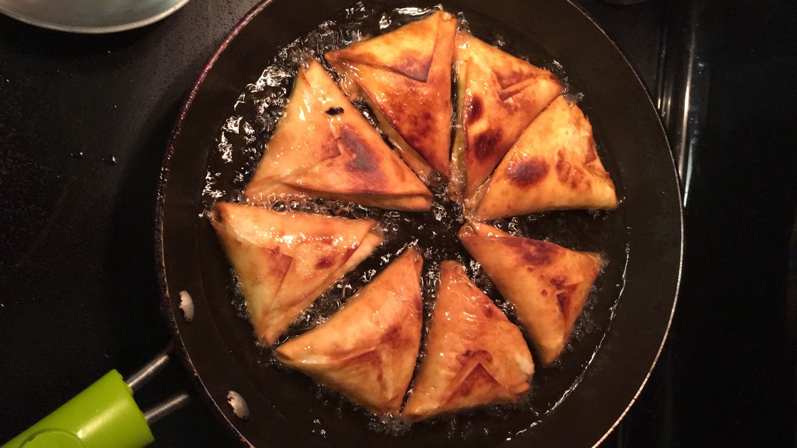 Дадим самсе немного отдохнуть- что б склеенная часть лучше ухватилась и начинаем обжаривать на масле.