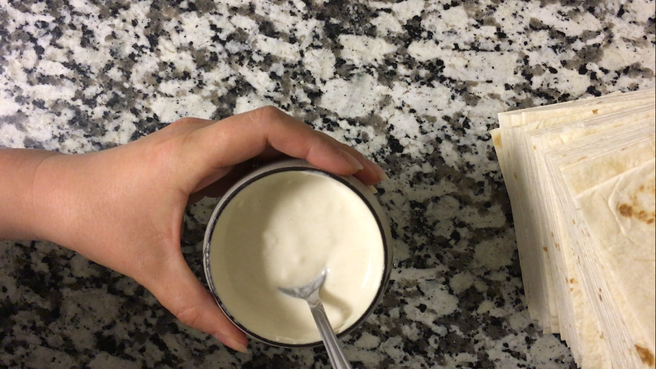 Приготовим мучную смесь для склеивания самсы. По консистенции должно быть как кефир