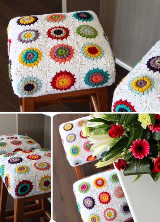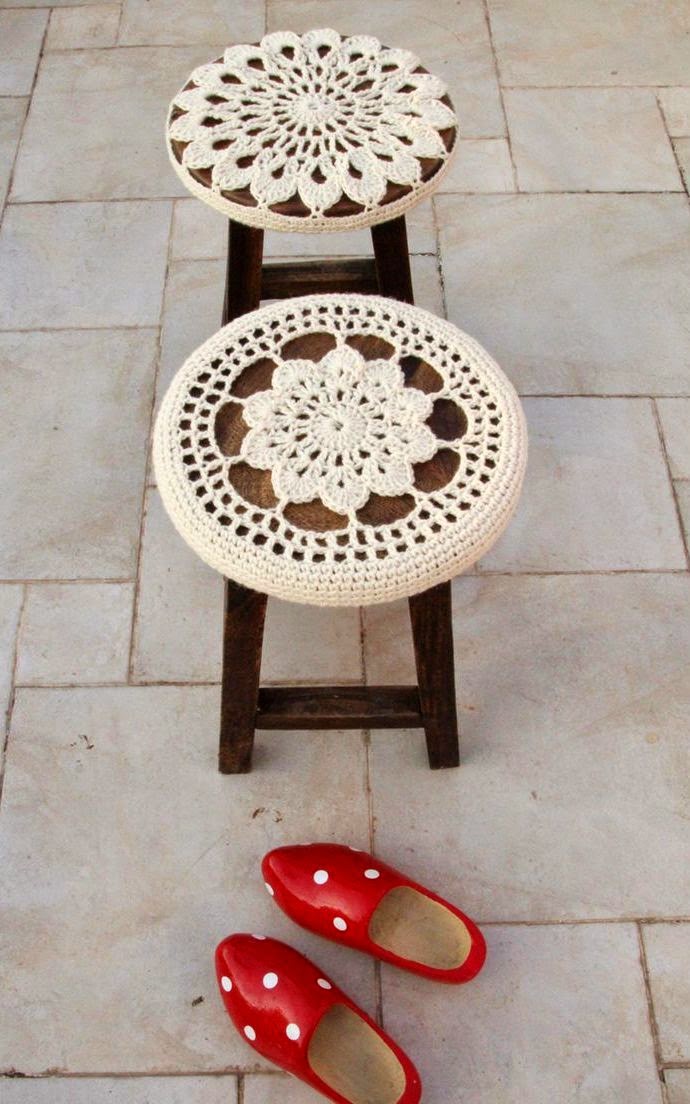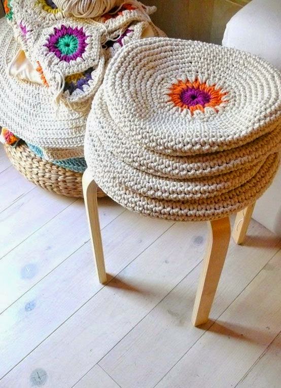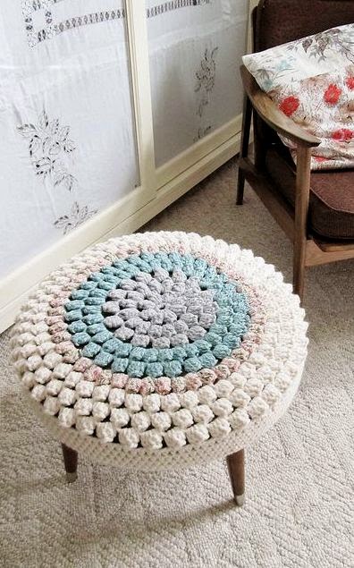 Вяжем для интерьера: "Пуфы, табуретки, скамеечки "