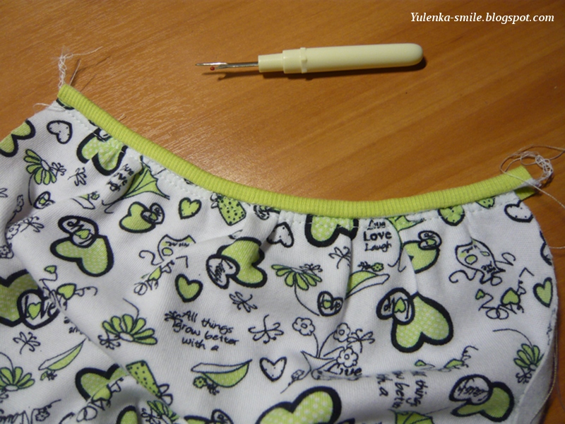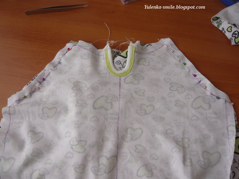 2. Я не укрепляла плечевые швы, т.к. считаю это не особо нужным в детских вещах. При использовании у нас ничего особо не растягивается, ну, в крайнем случае, когда вещь подвергалась пыткам :) , после стирки все приходит в норму.