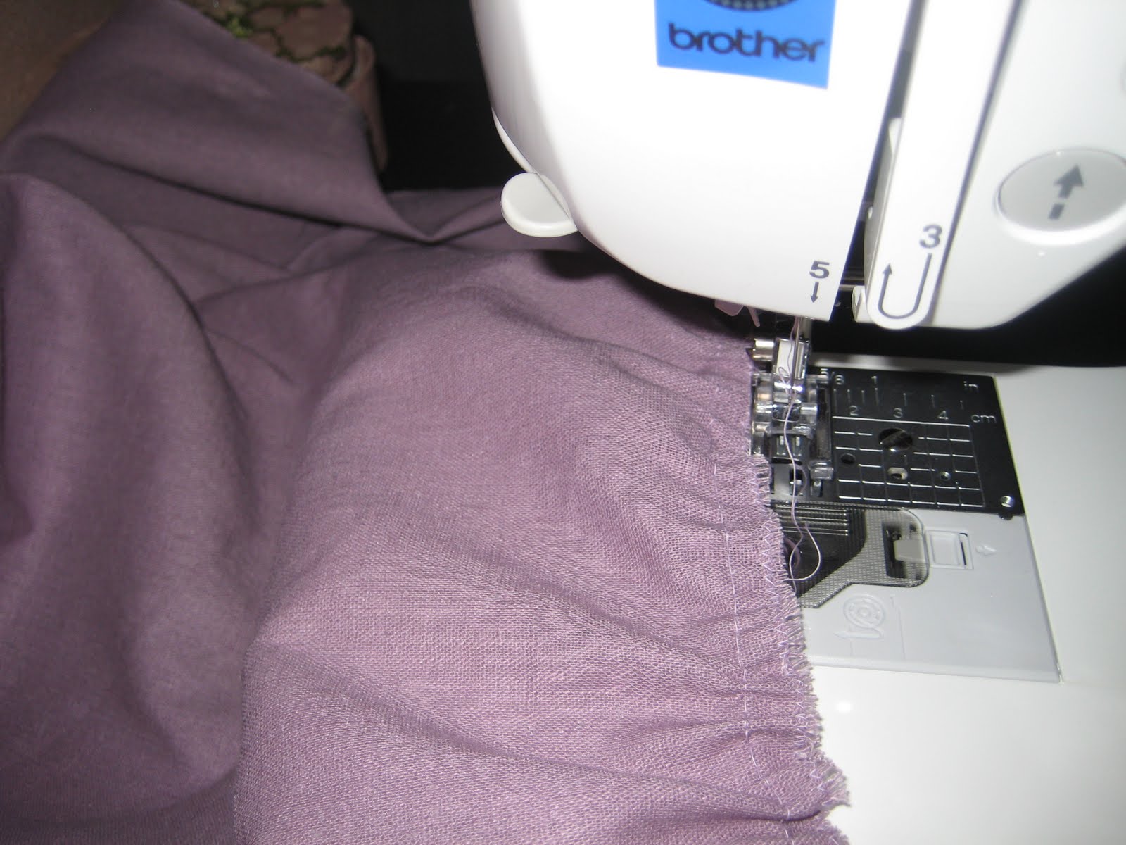 9. На противоположной длинной стороне делаем складки. Выбираем на машинке прямой шов, максимально увеличием длину стежка (у меня было 5), уменьшаем натяжение нити ( я уменьшала до 1), строчим.