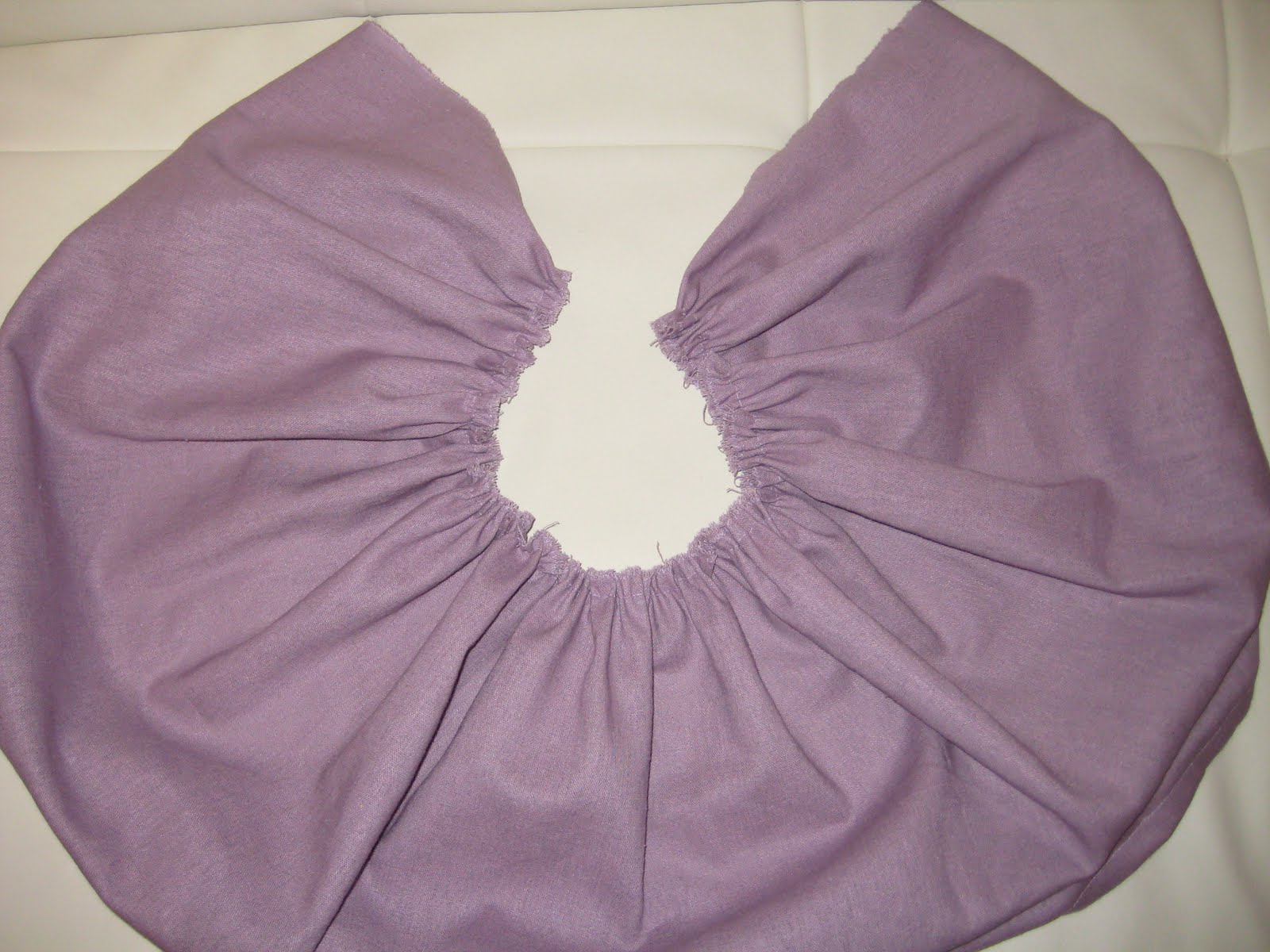 10. Тянем за нижнюю нить и присбариваем ткань так, чтобы образовавшееся отверстие в диаметре было меньше 20см