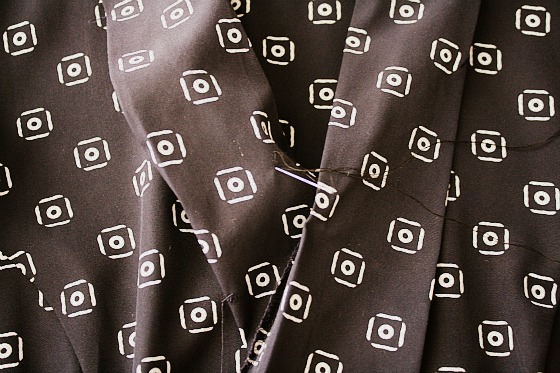 Этот шаг является необязательным. Если у вас есть некоторые крючки и блочки на руку (или просто крючки, на самом деле), использовать иглы и нитки, чтобы сшить маленькие петли на одной стороне воротника, и крюк, с другой стороны, вам придется делать это из-под ошейник, поэтому она скрыта). Таким образом, вы можете сделать ваше платье чуть менее показателен быстро и легко, если вы того пожелаете.