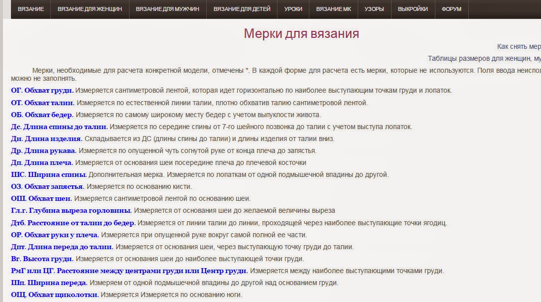 Если кликнуть на надпись в правом верхнем углу "Как снять мерки", мы переходим на страницу с графическими подсказками по правильному измерению: