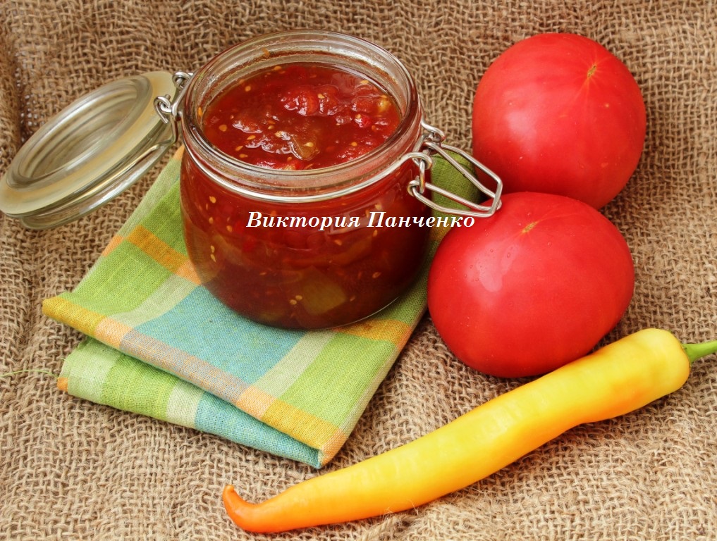 Такой джем хорошо подавать к мясу, к рыбе, к сыру... Полу-джем, полу-соус... Я сделала небольшую порцию на пробу... Использовала всего один помидор, но какой... помидор-богатырь... Рецепт привожу полностью.
