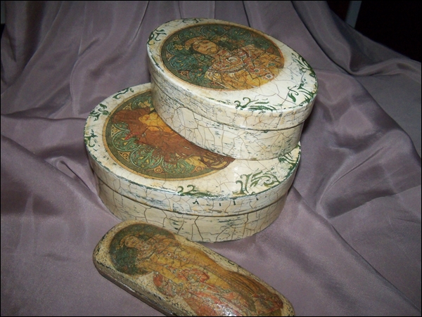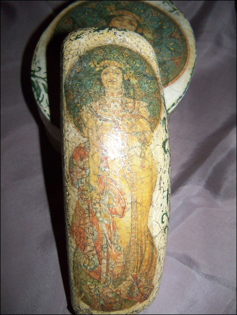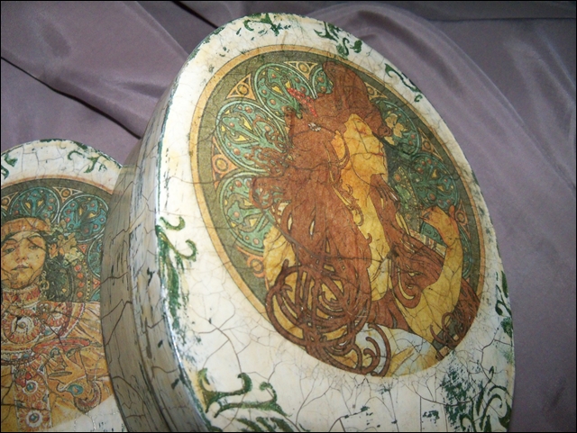 потертый ящик я склеил из рисовой бумаги с muchovim мотивы ....