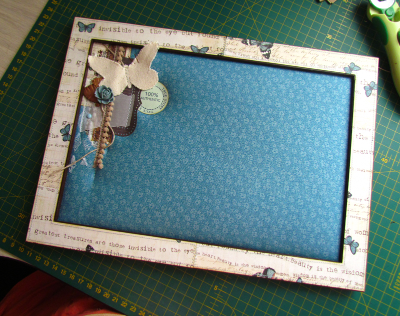 Теперь задекорируем бумагой лицевую часть рамки. Выбираем подходящие листы