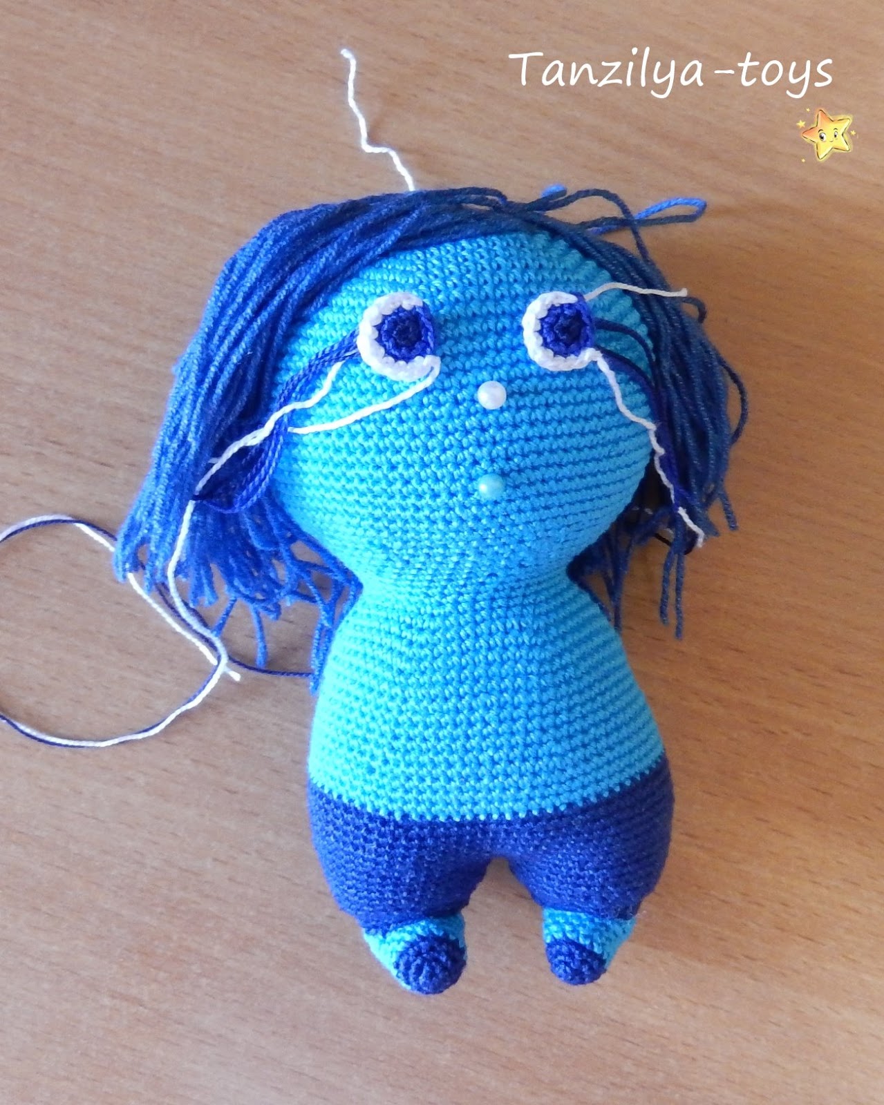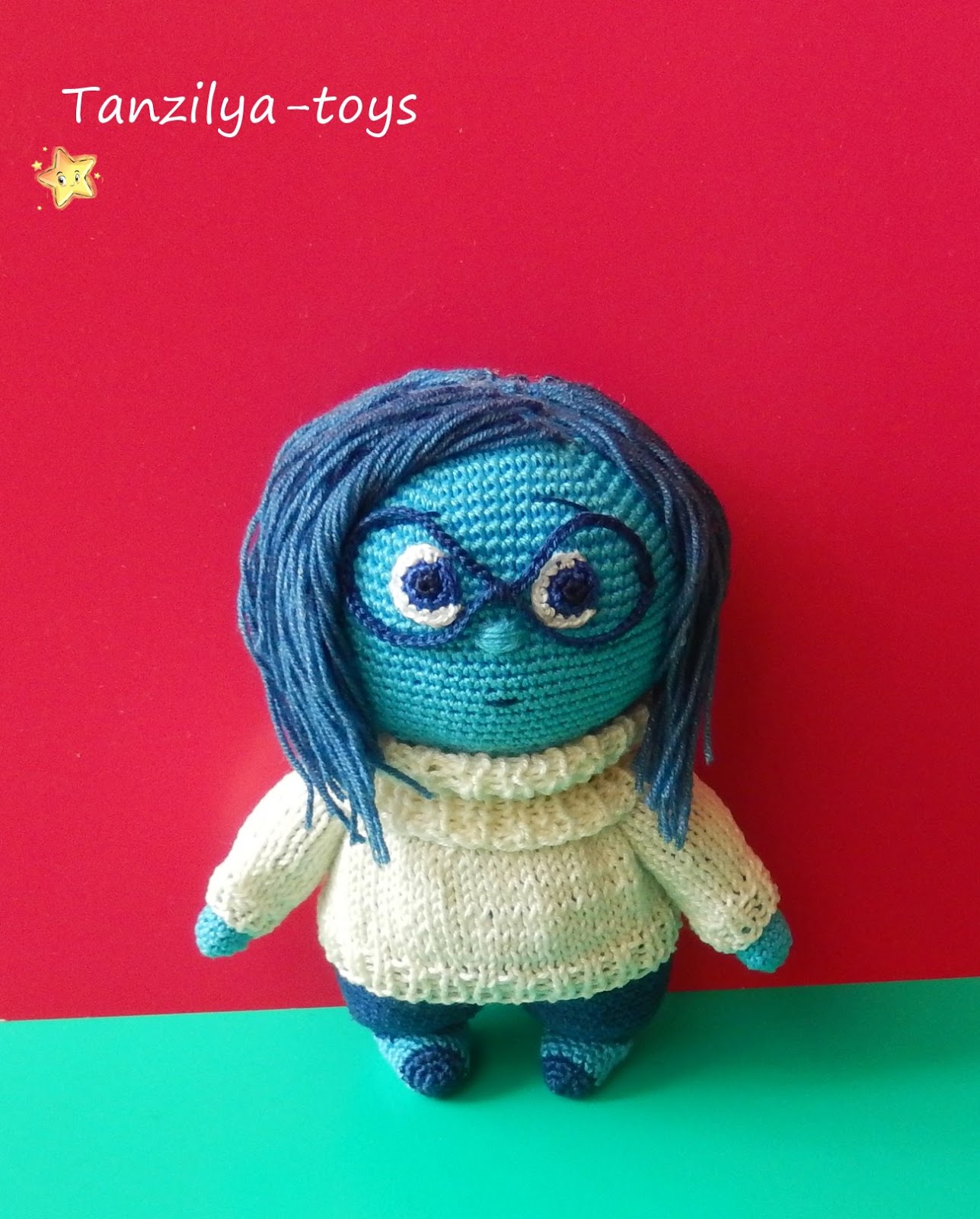 Персонаж из мультфильма «Головоломка» Inside out - Печаль (Sadness), доброе, заботливое, наивное создание. Свяжите своим деткам и себе тоже такую куколку. И пусть это будет единственная печаль в вашей жизни.