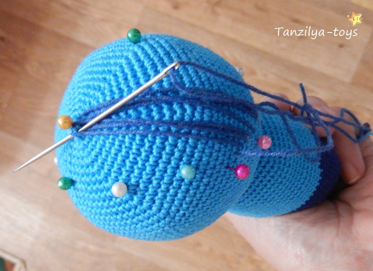 Детали игрушки вяжутся по спирали, для удобства рекомендую отмечать начало каждого ряда