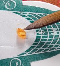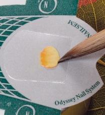2. На листе фольги или глянцевой бумаги, чтобы избежать прилипания влажного акрила (в данном случае – на лицевой стороне формы для наращивания) начать формирование основного цветка. Перед нанесением акрила необходимо следить за тем, чтобы форма была абсолютно чистой: на ней не должно оставаться акрила от предыдущих элементов цветка. Элементы дизайна с формы лучше снимать влажной кистью.