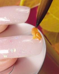 1. Нарастить ногти до желаемой длины, используя мономер и пудру основного цвета.