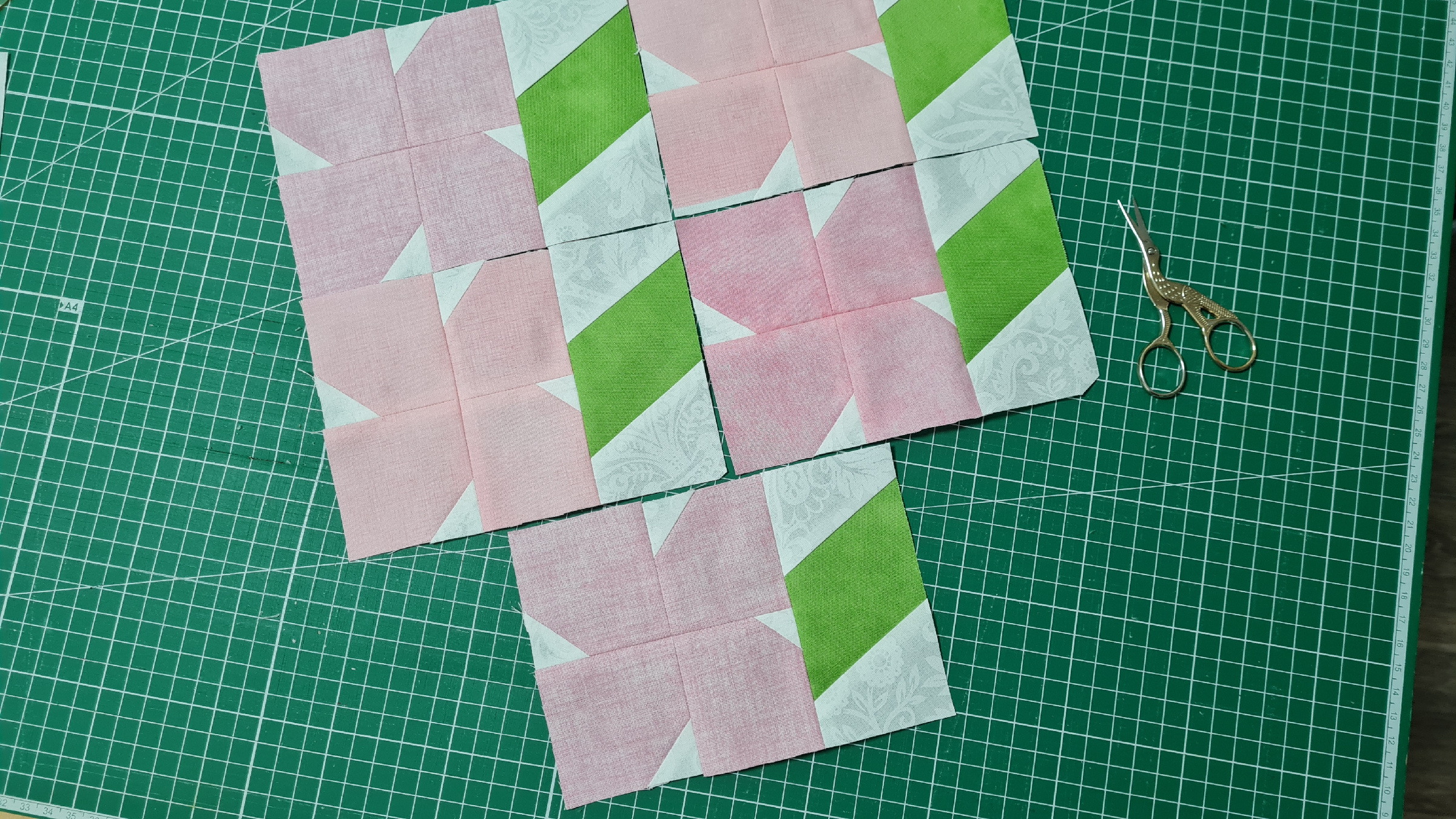 Одно я знаю точно, что в готовом виде сам блок должен иметь размер 10х15 см. Из этого делаю вывод, что с прибавкой на швы, мне нужно нарезать ткани размером 6,5 см. Отрисовала на бумаге готовый блок для наглядности и приступила к работе.