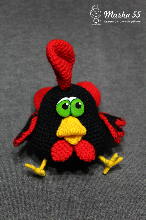 Вязаный крючком петушок-малышок от Уразбахтиной Марии (Masha55). В описании найдете фото оранжевого и черного петушков по одной схеме.