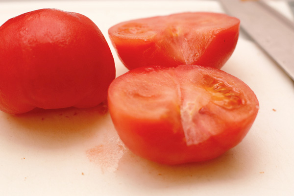 Спелые помидоры очистите от кожицы, предварительно сделав на ней крестообразный надрез и опустив в кипяток на минуту.