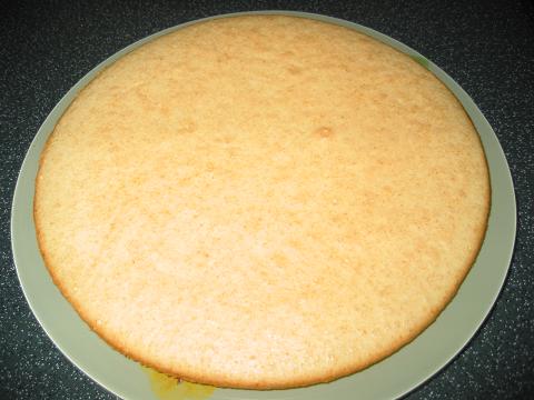 Корж положить на тарелку, вокруг поставить бортик формы, защелкнуть ее.