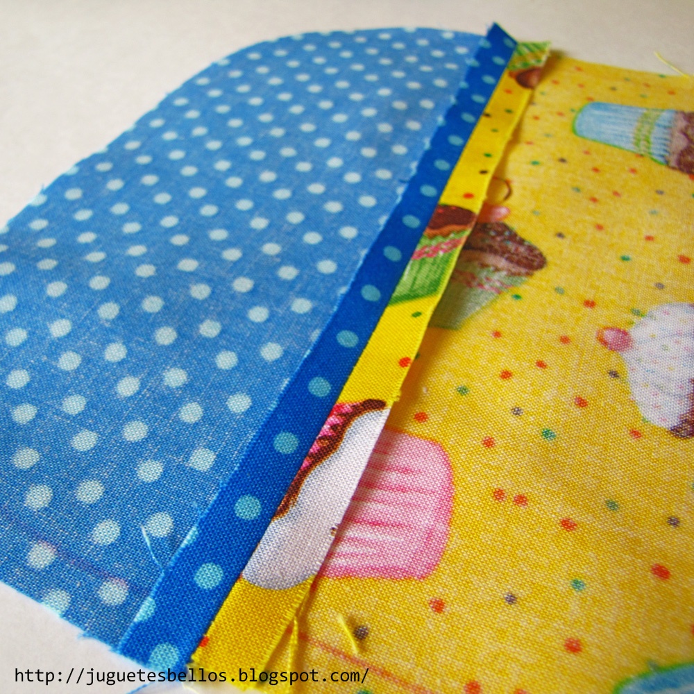 Теперь будем соединять переднюю и заднюю часть слюнявчика. Для этого складываем их лицевой стороной внутрь друг к другу и закрепляем булавками.