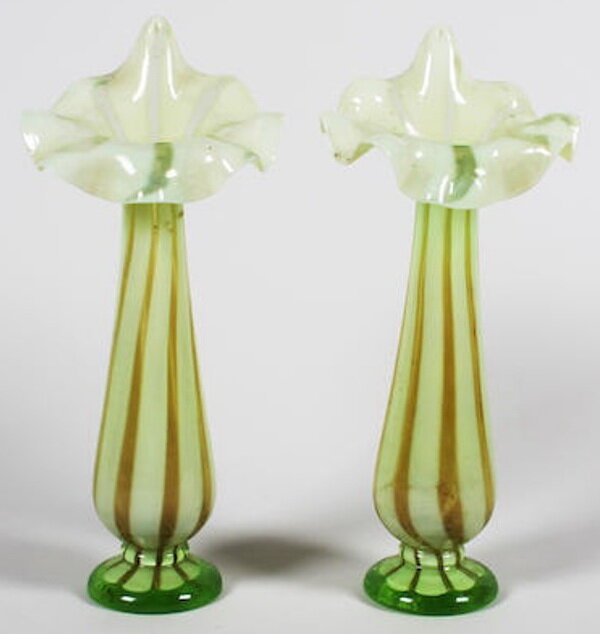 Пара викторианских ваз «Джек за кафедрой» из «вазелинового» стекла, высота 32,5 см.