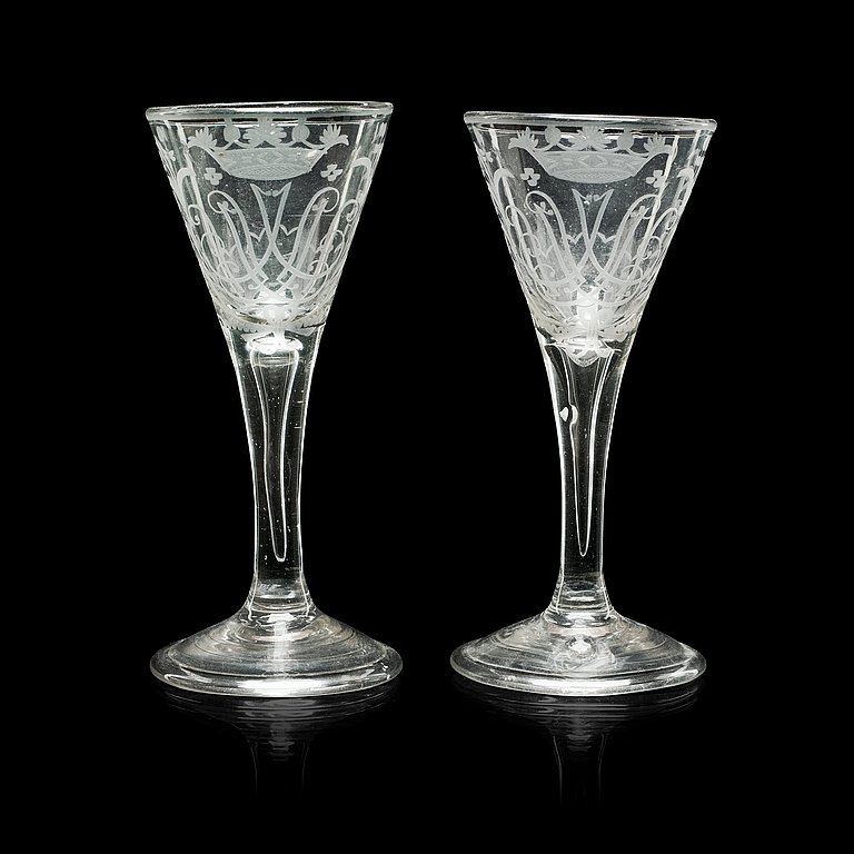 Набор из двух шведских гербовых кубков, стекольная мануфактура Кунгсхольмс, 18 век.