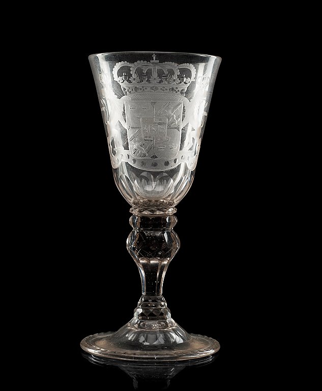 Большой шведский гербовый кубок с огранкой и гравировкой, стекольная мануфактура Кунгсхольмс, 18 век.