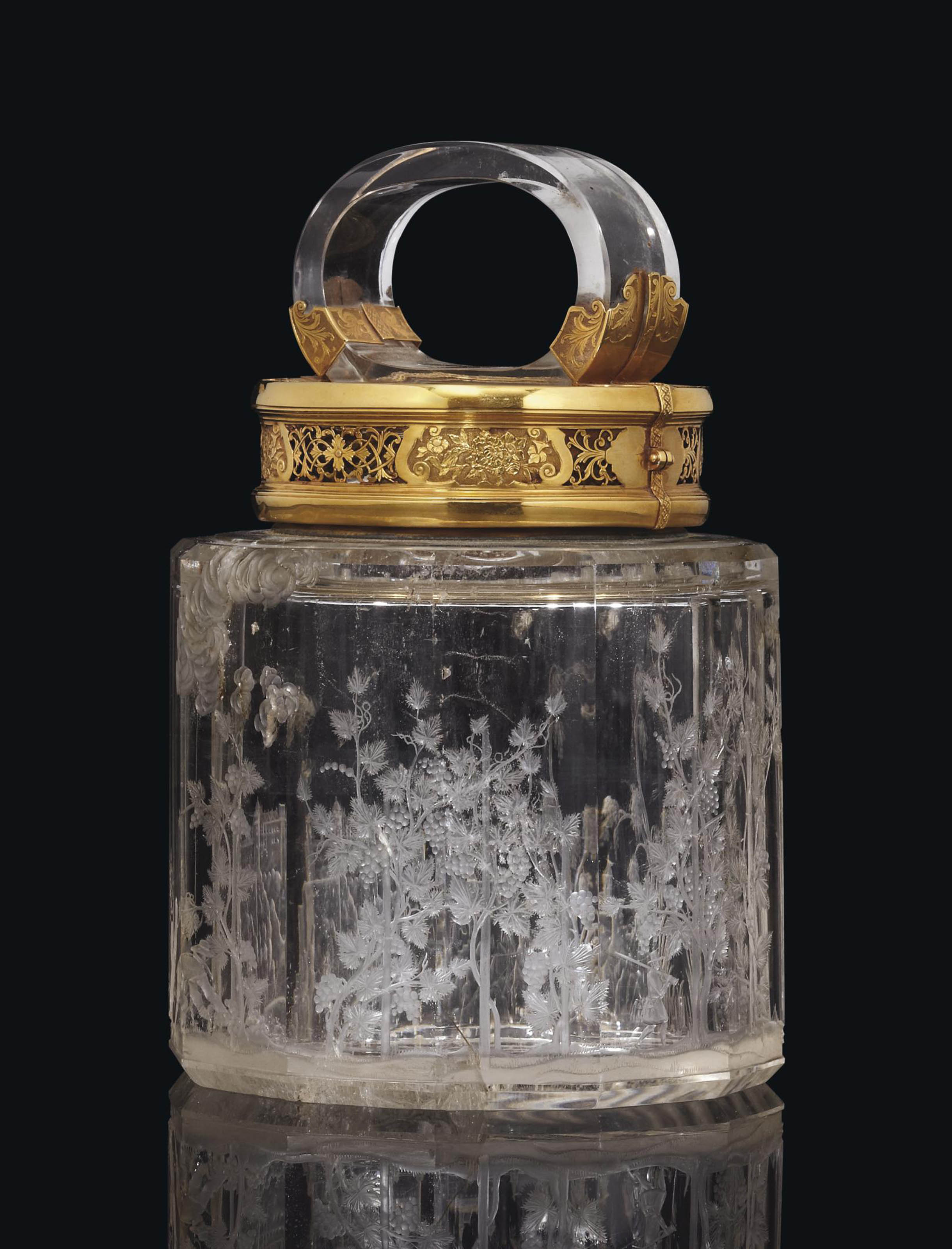 POT COUVERT EN OR ET CRISTAL DE ROCHE