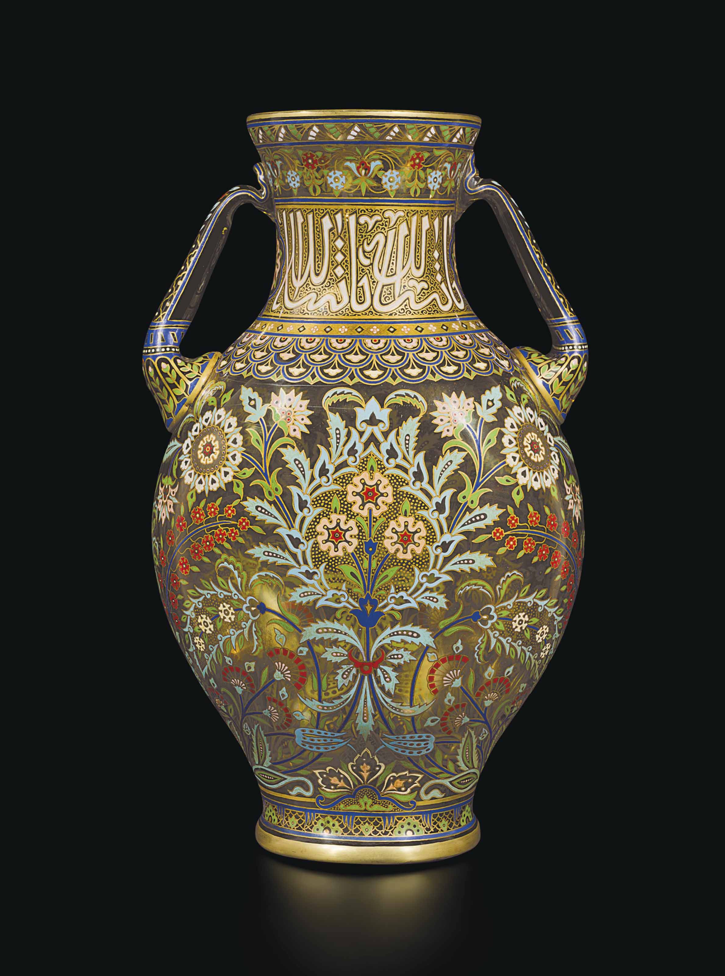 ÁÎËÜØÀß ÑÒÅÊËßÍÍÀß ÂÀÇÀ J. & L. LOBMEYR Ñ ÄÂÓÌß ÐÓ×ÊÀÌÈ, ÝÌÀËÈÐÎÂÀÍÍÀß Â ÏÅÐÑÈÄÑÊÎÌ ÑÒÈËÅ, ßÍÒÀÐÍÎÃÎ ÖÂÅÒÀ