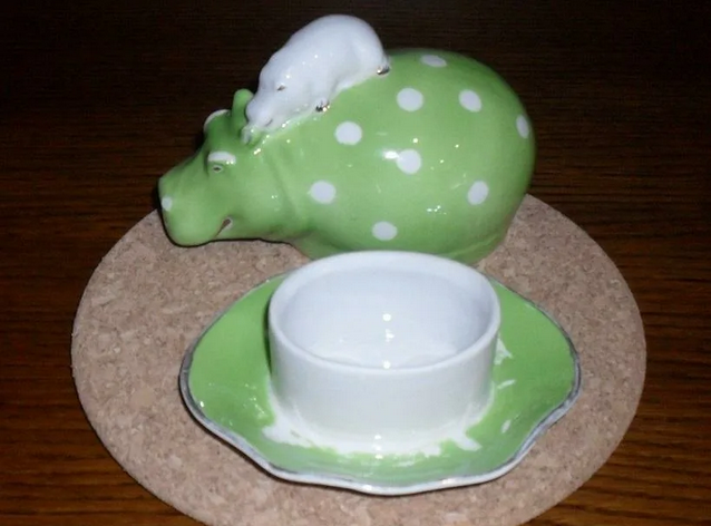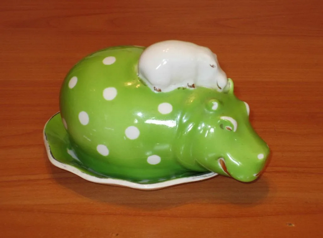 Маслёнка "Бегемот" в росписи "Горох" на зелёном.