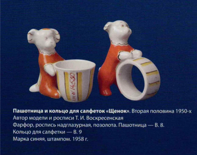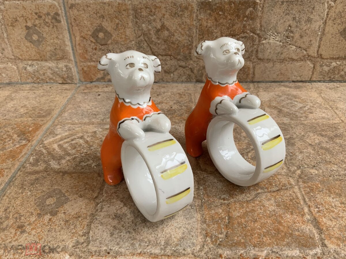 Кольца для салфеток в виде фигурок цирковых собачек. 1950-е. Выпускалась ещё и подставка под яйцо в таком же виде.
