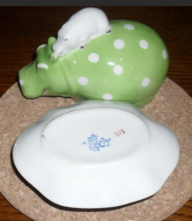 По тому, сколько до сих пор выставлено таких "Бегемотов", а точнее, бегемотих с бегемотиками на спине, на продажу, можно предположить, что эту штуковину продавали не в сервизе, а отдельно, как статуэтку, наделали этих штуковин много, и они пользовались спросом.